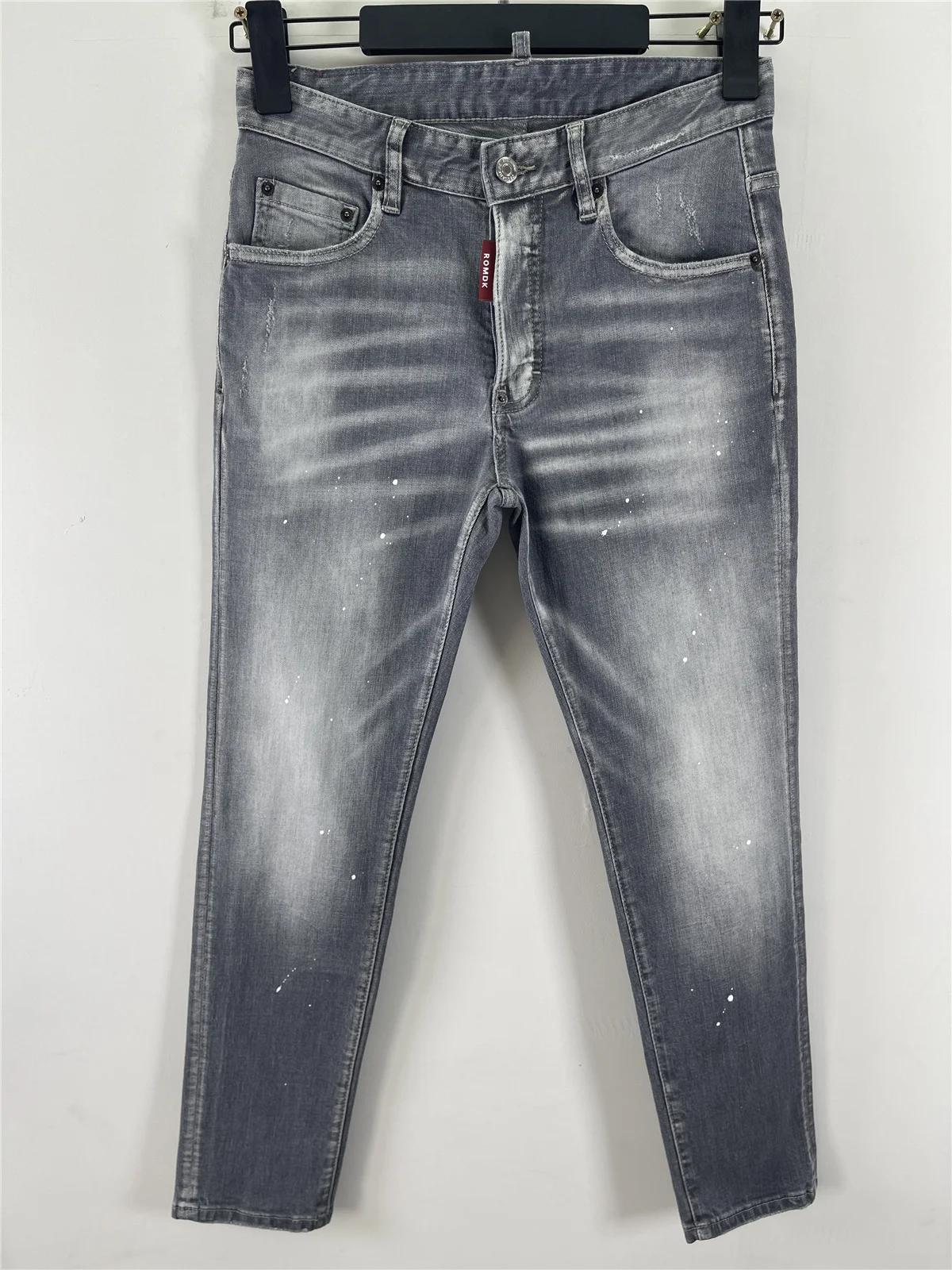 2025 봄/여름 신상 D2 트렌디 남성용 청바지, 워싱, 워싱드, 패치워크, 슬림핏, 트렌디 남성, 다용도, 슬림핏, 그레이