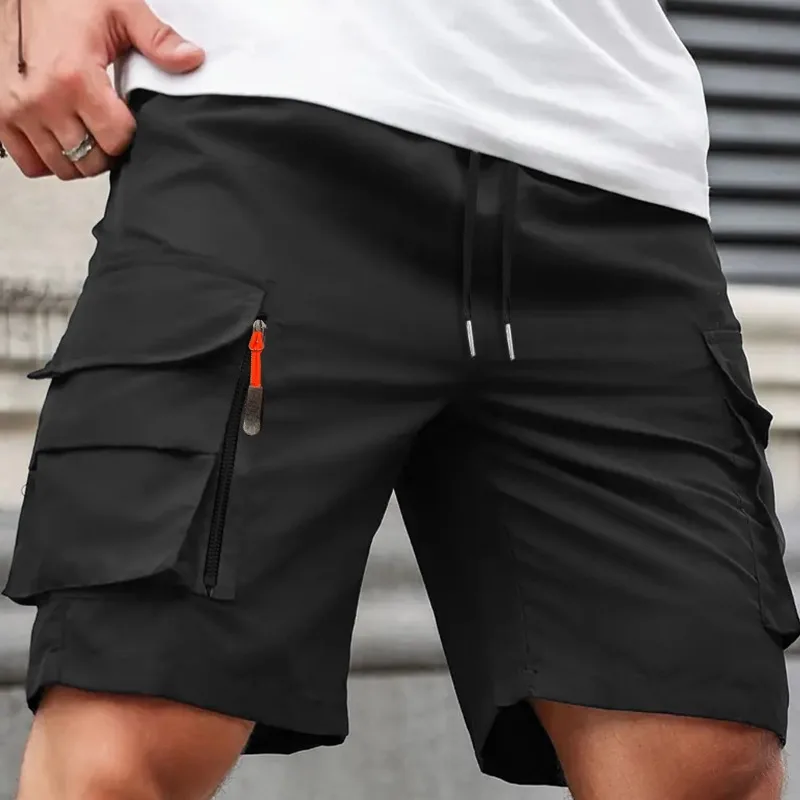 여름 얇은 남성 카고 반바지 주머니 솔리드 컬러 Drawstring 캐주얼 새로운 스포츠 러닝 패션 2025 남성 반바지 바지