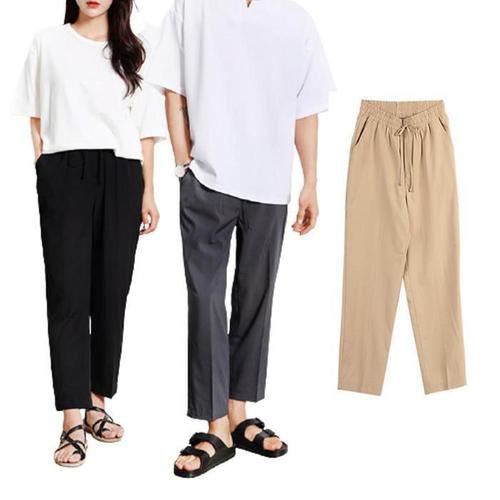 여름 린넨 남자 카고 조거 팬츠 시원한 남성 마 바지 아이스 스판 밴딩