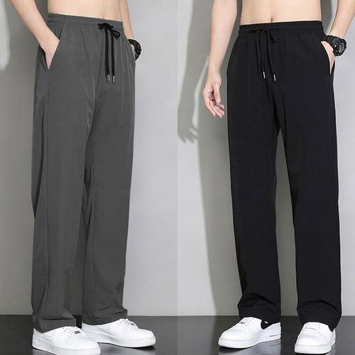 남성용 캐주얼 아이스 실크 팬츠 2개, 신축성 슬림핏 밴딩 조거 팬츠, 한국 클래식 남성 브랜드 로고 프린트 롱 트라우저