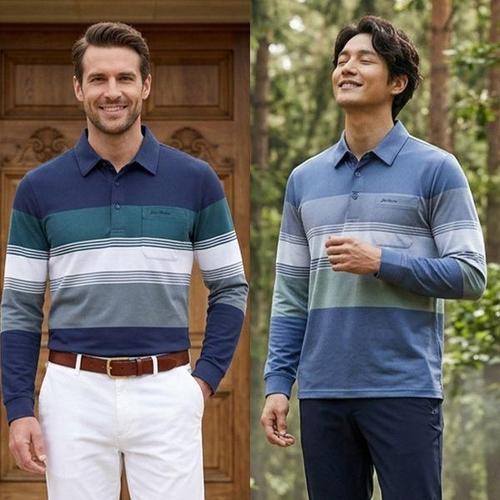 남성 스트라이프 카라티 긴팔 폴로셔츠 캐주얼 골프웨어 간절기 티셔츠
