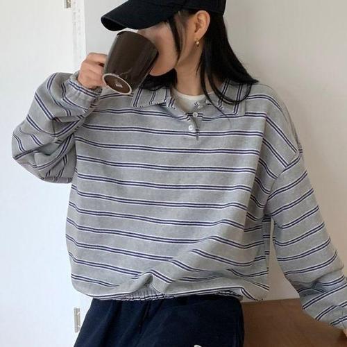 오디너리 탑 스트라이프 카라 긴팔 맨투맨