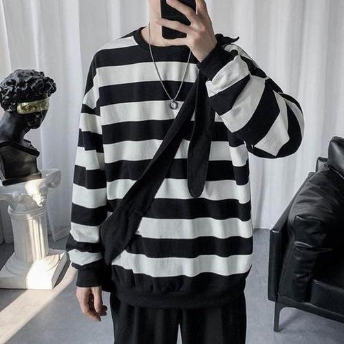 해피유통 남성 긴팔 배색 스트라이프 맨투맨 캐주얼 개성 디자인 jsl