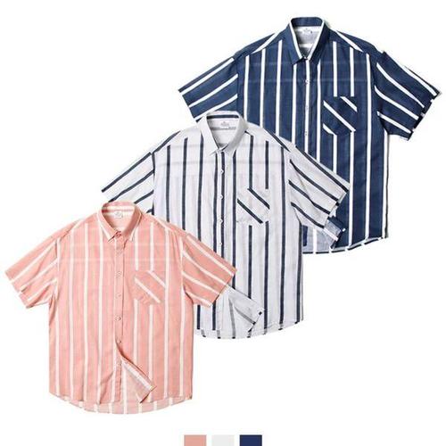 [모로엠]남자 프롬 스트라이프 린넨반팔셔츠 오버핏반팔셔츠 ON-SHH-QWFHKJOF