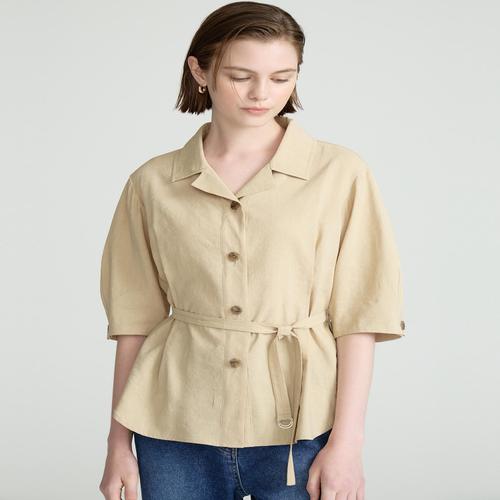 [D-SET UP] 베이지 멜란지 린넨혼방 5부소매셔츠 (DLSH5BI41I1)