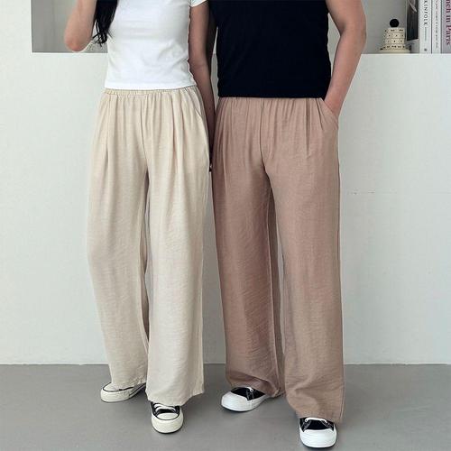 [리빌모아]남여공용 린넨 투턱 밴딩 심플 와이드 바지 SDW-PTS-SSD1002291