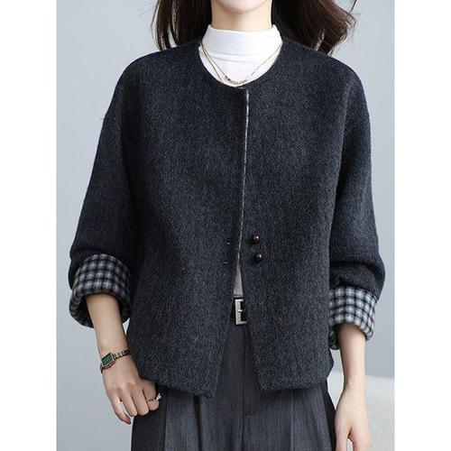 [리블리크]노카라 체크소매 모직코트_RE4HC008
