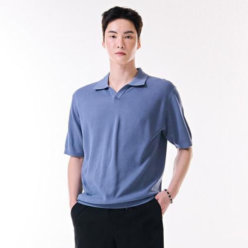 남자 여름 코헨 반집업 카라 반팔 니트티 SG-KNH-Q014-코발트