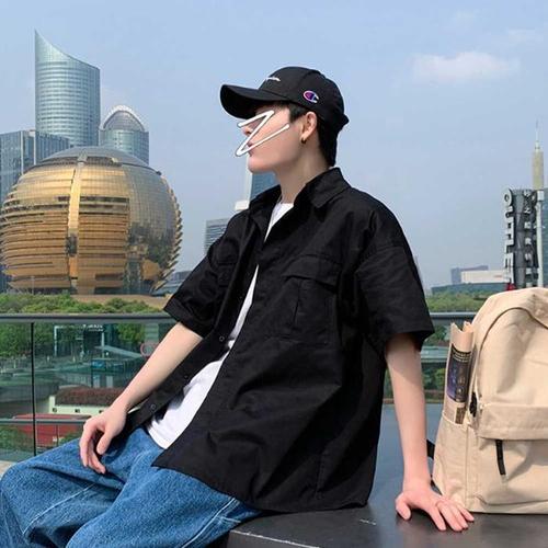 [주식회사 브이와이][JHQRKF40_4B]데일리 반팔 남자블랙셔츠 대학생 여름 셔츠 (23832362A)