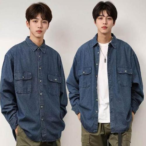 [주식회사 브이와이][JHQRJFUH_4B]남성 남자반팔셔츠 양포켓 딥컬러 데님 셔츠 (24023883A)