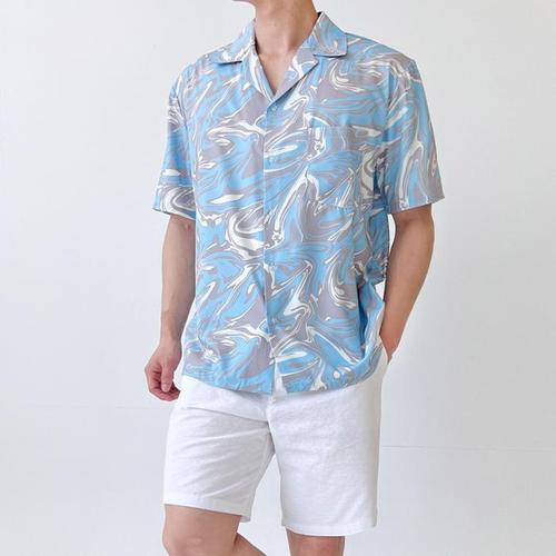 [다잇템]남자 SS 신혼 해변 여행룩 박시핏 반소매 셔츠 (16576171A)