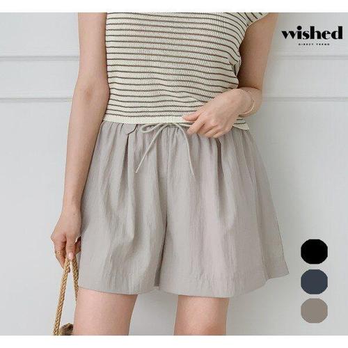 [위시드]핀턱 허리 밴딩 끈 와이드 숏 데일리 팬츠 (WIBBPT021)