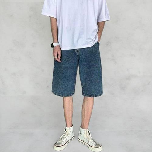 [옷자락]남성 캐주얼 밴딩 스트링 포켓 진청 데님 숏팬츠