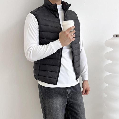 화이트 조끼 자켓 남성 슬림 피트 스탠드 칼라 민소매 퍼퍼 자켓 봄 가을 캐주얼 양복 조끼 남성 따뜻한 코트 2023 트렌드