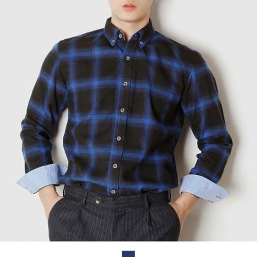 KING 블루 체크 기모 긴팔 셔츠 95-110 WFKMXKD