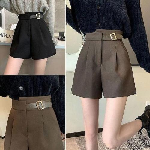 슬랙스반바지 버뮤다 허리 여름 핀턱 반바지 슬랙스 늦봄 벨트 세트 WFJHNBG
