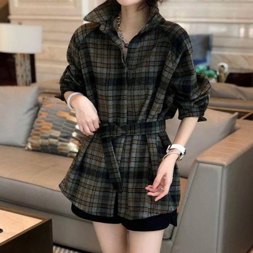 [셀럽하우스]남방 CASP7165 체크 캐주얼 기모 베이직 여성 아우터