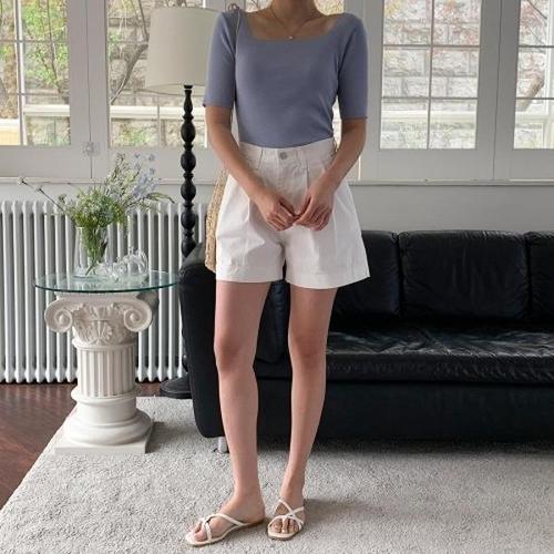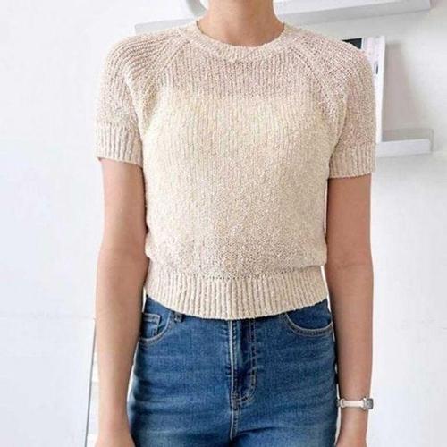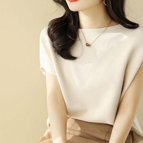 [에이치플러스몰]소프트 슬림핏 반팔니트 여름니트티셔츠 오피스룩니트