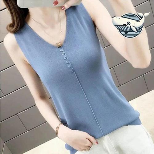 [오노마] ONM 여름 슬림핏 세련된 니트 나시 블루 베이직