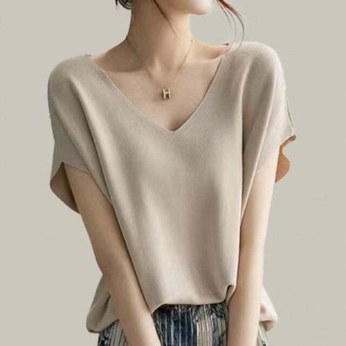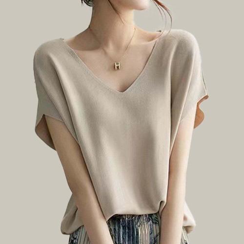 [셀럽하우스]셔츠 BTRF5614 브이넥 니트 베이지 쿨 반팔 여름 티