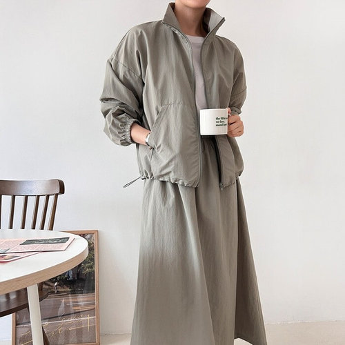 플러리싱 / 아노락 집업 점퍼 밴딩 플레어 롱스커트 set 플러리
