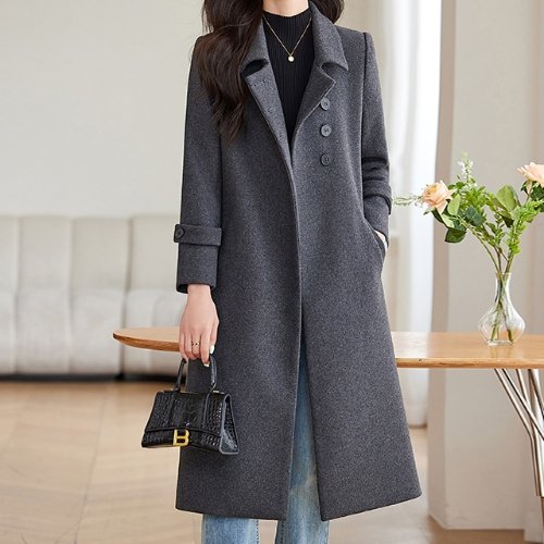 남성 슬림핏 스탠드카라 하프 모직 코트 봄 가을 정장 WI006CT