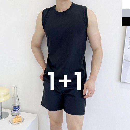 [옷자락]남성 헬스 상하의 민소매티 스판 숏팬츠 세트
