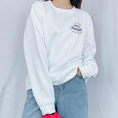 [험블][험블] 남녀공용롱맨투맨 북극곰로고 기모맨투맨티 (7611791A)