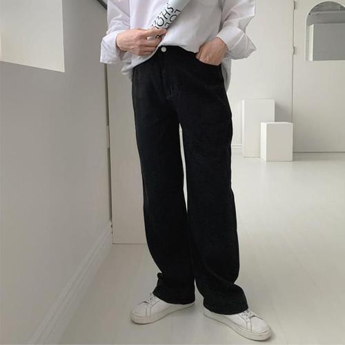 배기핏 일자 아템 배기 청바지 워싱 구제 커브 하이웨스트 편한 진 팬츠 남성용 캐주얼 빈티지 스포M1