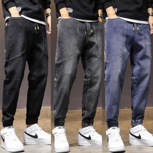 롤업 남자 청바지 테이퍼드 배기 컷팅진 조거 카고 워배기 가을 퍼드핏 컷팅 워싱 남성