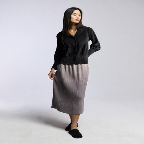 [플리츠미][플리츠미] 투 티어드 플리츠 숄 카라 버튼 가디건_PPCDW025001