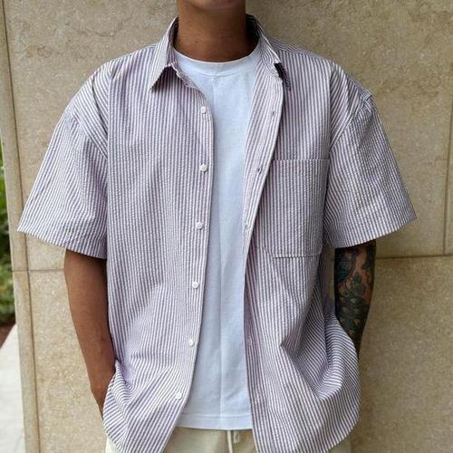 남자셔츠 반팔 신상 루즈 오버핏 남방 스트라이프 WFFOSGO