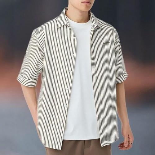 [에이치플러스몰]스트라이프셔츠 남자반팔 린넨셔츠 스트릿셔츠 남