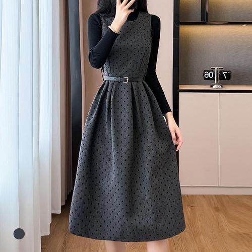[삐까삐까]빅사이즈 겨울 니트 치마 투피스 세트 윈터 라운드 니트 플레어 스커트 꾸안꾸 코디 세트