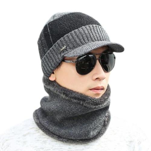 남성 겨울 방한 퍼 안감 넥워머 귀마개 모자 세트 방한 니트