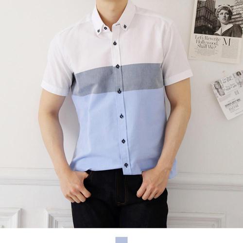 [모로엠] 블랙배색 화이트 남자반팔 정장셔츠 DMG-TSH-Q4174626