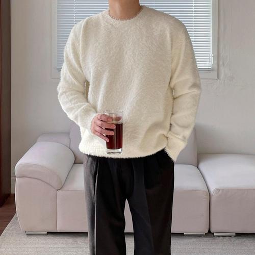 남자 미니멀 모헤어 앙고라 오버핏 겨울 부드러운 니트 스웨터 1 WFKOGJM