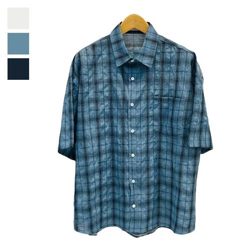 여름 남자 데일리 사각체크 오버핏 반팔 카라 셔츠 RB-SHH-Q071