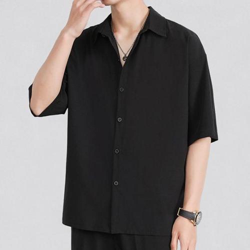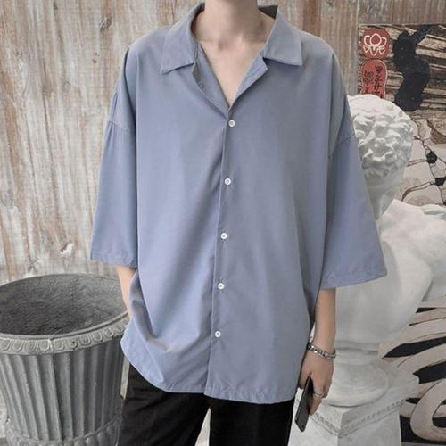 여름 남자 오버핏 베이직 무지 심플 반팔 셔츠 OC-SHH-SW8EE2F3