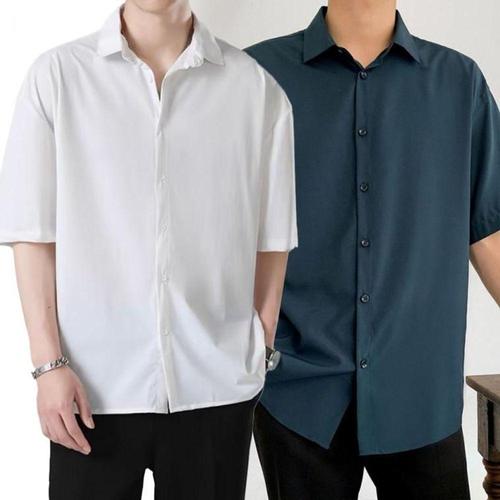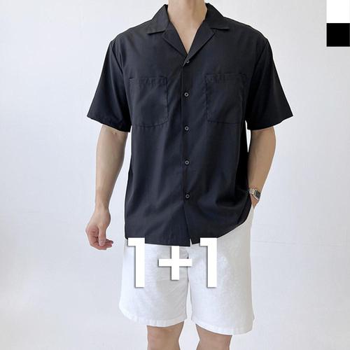블레오 남자 여름 오버핏 무지 반팔 남방 셔츠 (1+1) DM25121591