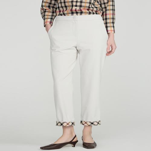 베이지 체크 배색 일자핏 뒷밴딩 여름 슬랙스 팬츠 (DLPA5BE21I1)
