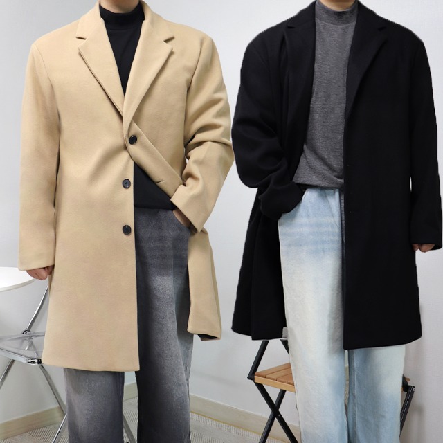 [엠클로]남자 오버핏 바네샤 스탠다드 3버튼 싱글 울 롱코트 (2color)