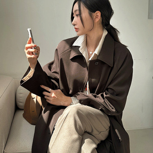 [지오지아][지오지아] 클래식 오버핏 싱글 트렌치코트 (AEC1CG1102)