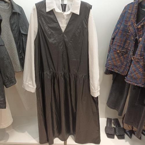[크로커다일레이디]크로커다일레이디 (CLEMOP102) 배색 스티치 포인트 훌 스커트 원피스_GN