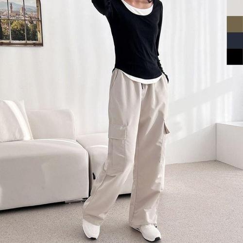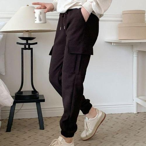 [에이치플러스몰]밑단스트링 일자 조거 투웨이 기모 카고바지 옆포켓