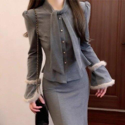 [모노무드]모노무드 자켓형 롱원피스 벨트 트임 얇은옷 파티룩