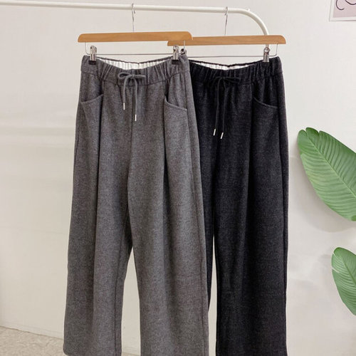 허니제이 / 토터블 융기모 모직 핀턱 포켓 와이드 밴딩 슬랙스 팬츠(2color)