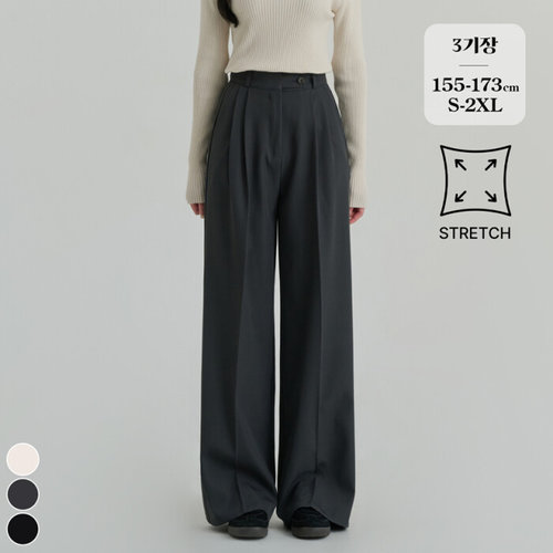 포레스트핏 / (노컷슬랙스13탄) 비조 핀턱 스판 와이드 슬랙스