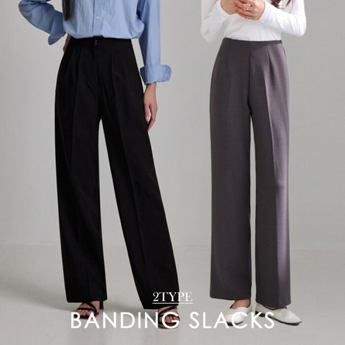 포레스트핏 / CJ단독 후기보장 핀턱 밴딩 와이드 슬랙스 2종택1