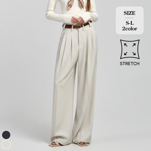 [디바옴므]사방스판 핀턱 와이드 슬랙스 팬츠